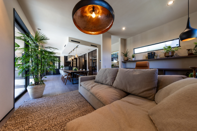 当社では設計士ではなく、「デザイナー」がお客様と打合せを行い、間取り、動線、性能、素材、照明、家具に至る全てをコーディネートします。デザイナーのトータルコーディネートにより一貫した住空間が生まれ、ただ見た目がかっこいい家ではなく、住み心地や機能性、快適さも追及した家づくりをご提案します。
