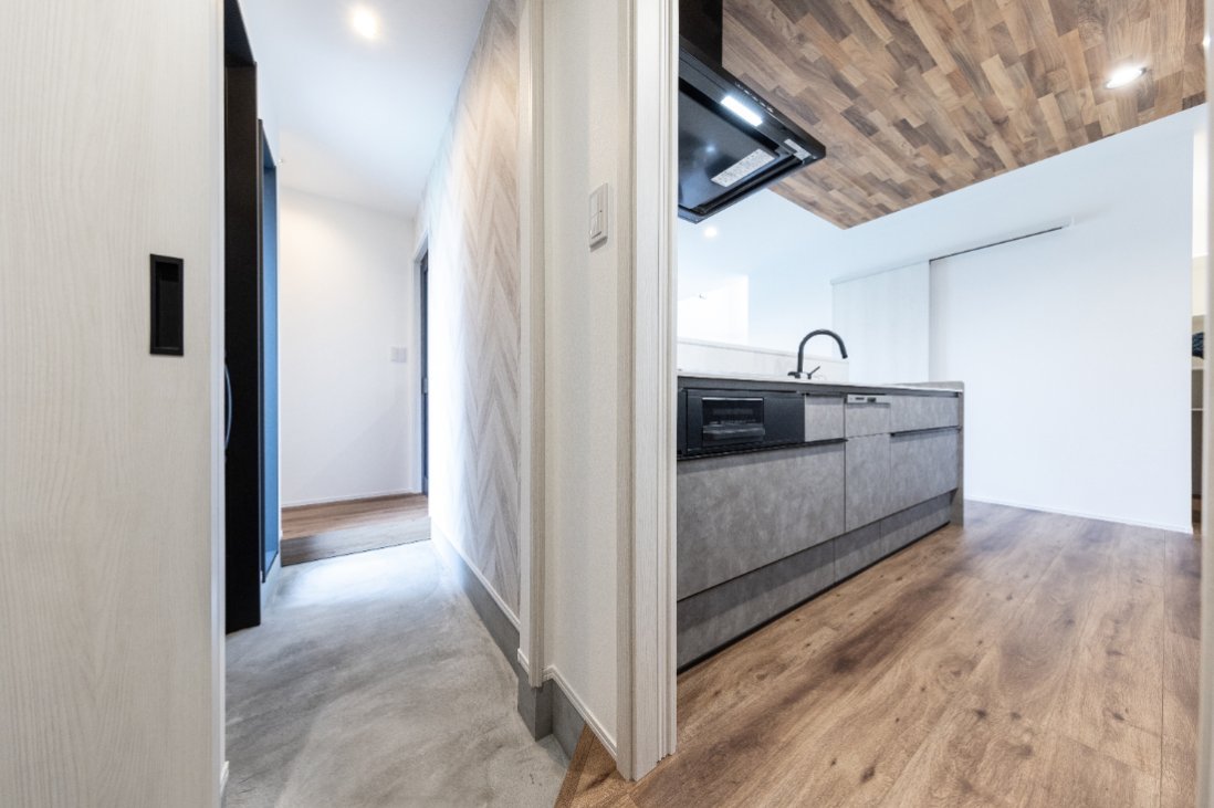 土間からキッチンまで直通の動線で、