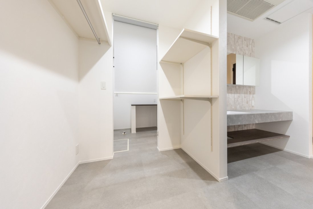 モルタル調のライトグレーの床に重厚感が