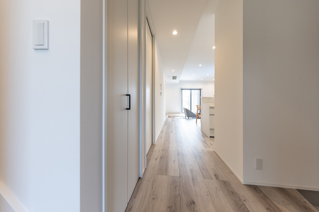 床材もアッシュ系の木目調を使用することで