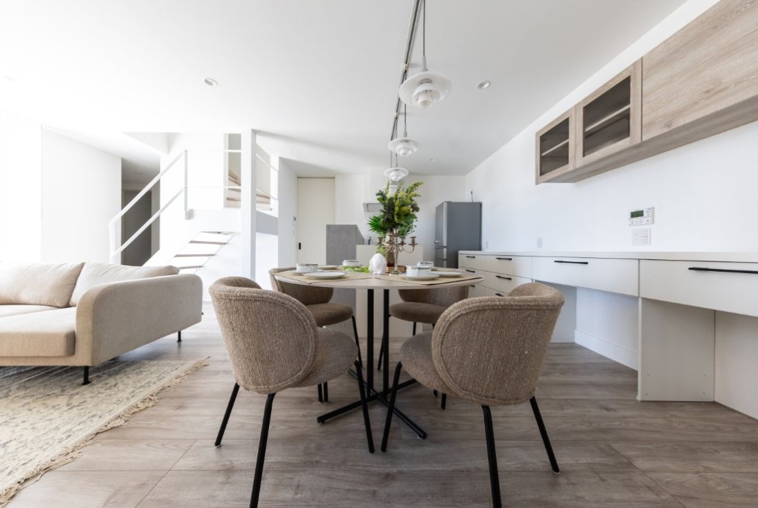 落ち着いた木目とホワイトを基調とした